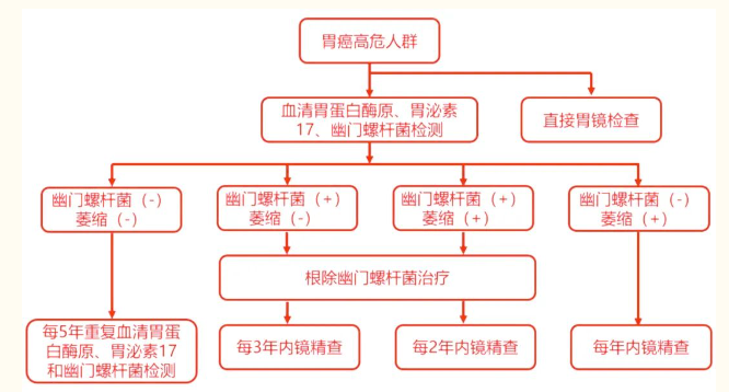 2014年4月,我國(guó)提出《中囯早期胃癌篩查及內(nèi)鏡診治共識(shí)意見(jiàn)》,共識(shí)推薦聯(lián)合血清學(xué)檢查胃蛋白酶原和幽門桿菌對(duì)胃癌高危人群進(jìn)行檢測(cè)的路徑。
